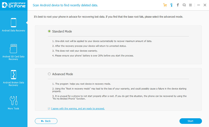 Click “Allow” to enable it. Then click “Start” to continue scanning your device for lost data on it.